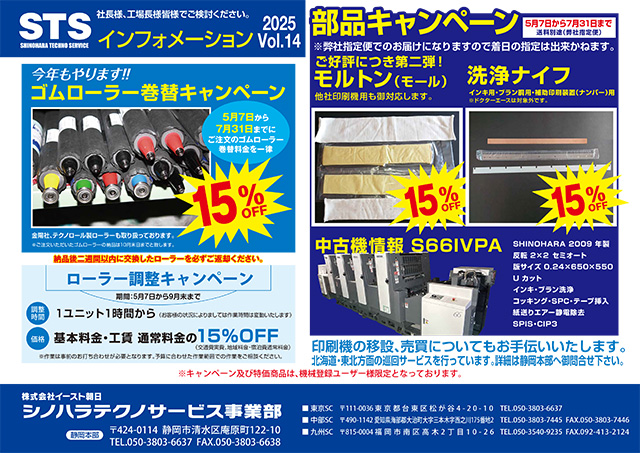 当社はシノハラ印刷機のメンテナンス及び部品供給を行います